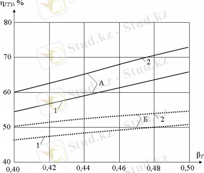 Егер қазіргі ГТҚ үшін ТКТ мәндері 450-650 ºС шегінде болса, онда βУТ шамасы шамамен 0, 70-тен 0, 92-ге дейін болады.