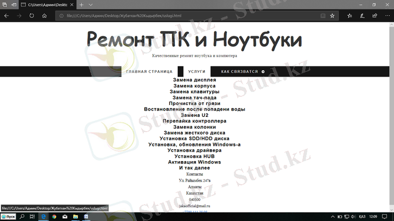 Бұл сайтты жасау барысында, мен <H1>, <H2>, <H3>, <H4>, <div>, <li>, <ul>, <p>, </p> <a href="#"><span>2GIS</span></a>, <header>, <article>, </article>, <img src="#">, <br>, </script>, <img weigth=”200px”>, autostart, autoplay секілді және тағы басқада тегтарды, атрибуттарды, гиперсілтемелерді қолдандым.