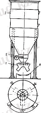 1 - тарелкалы қоректендіргіш, 2 - шибер, 3 - силос, 4 - ленталы транспортер.
