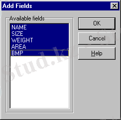 Кестенің барлық колонкаларының аттары Add Fields диалогтың панелінде 1. 1-суретіне сәйкес көрінеді.