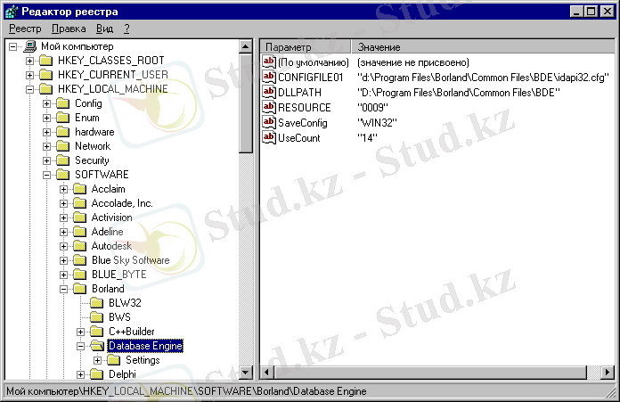 1. 13-сурет. Windows 95 реестріндегі BDE жөніндегі мәлімемет