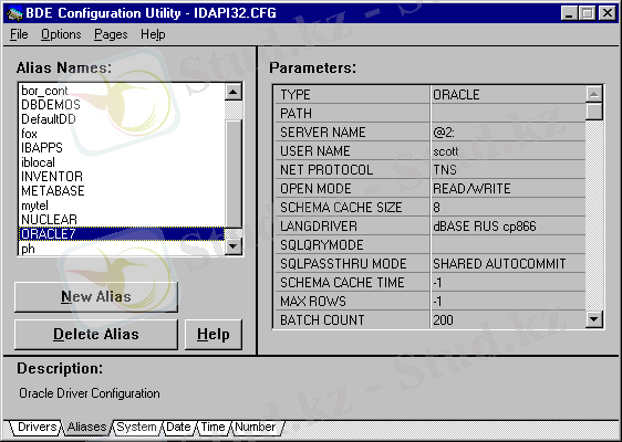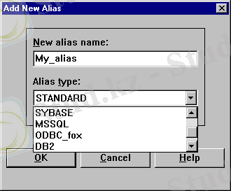 Borland өңдеу құралының деректеріне қосымшаның жолашықтығы болуы үшін «Бүркеншік ат» механизмін қолданады, ол нақты деректер көзіне жолашықтықты сипаттайды. Жаңа деректер көзінің сипаттамасын 1. 8-суретіне сәйкес терезенің сол жақ бөлігінде New Alias батырмасын шерту арқылы құруға болады.