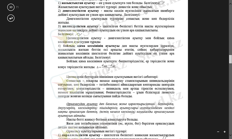 Цилиндрлiк беттердiң пiшiнiнен ауытқуының негiзгi себептерi: