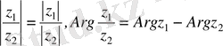 модульдері бөлінеді, ал бөлшектің алымындағы комплекс санның аргументінен бөліміндегі комплекс санның аргументі алынады, яғни