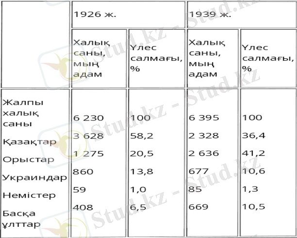 1926 - 1939 жж. Қазақстанның халық саны (1 кесте)