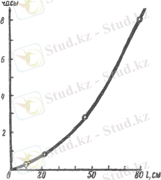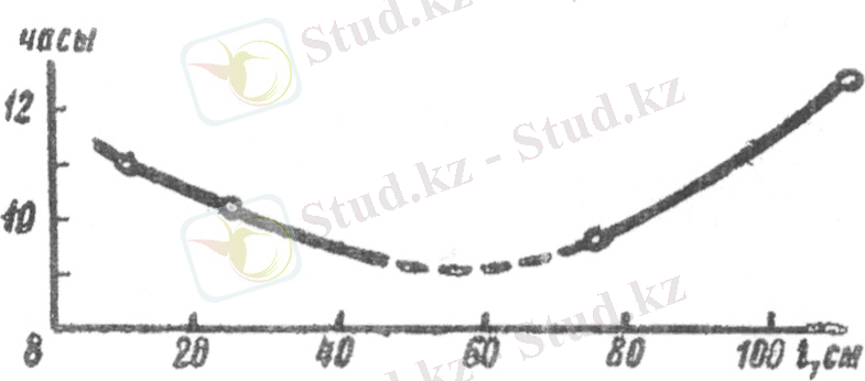 1. 2 - Сурет - Катионит КУ-1 түйіршектерінің толығымен араластырылуы уақытының қалқып жүрген қабаттың ұзындығына ( H = 2) тәуелділігі.