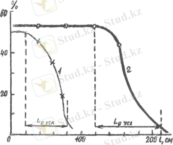 1. 3 - суретінде сорбенттің қорғаныс әсері уақытының жалпы ұзындығы 110 см құрайтын қалқып тұрған қабаттың әр секциясындағы қабаттың ұзындығына тәуелділігі көрсетілген.