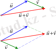 Екі векторларды қосуды параллелограмм ережесімен де, үшбұрыш ережесімен де іске асыруға болады.