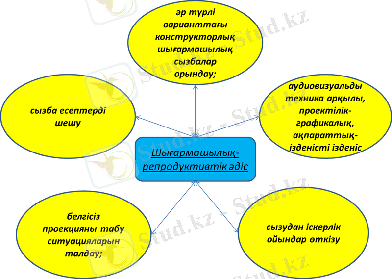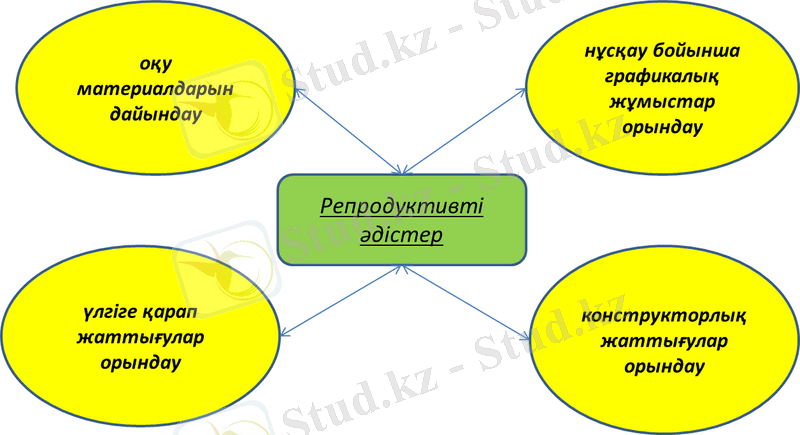 - оқушылардың ойлану қабілетін және кеңістіктегі нәрсені көз алдына елестете білуіне талаптандыратын әдістер мен құралдар;