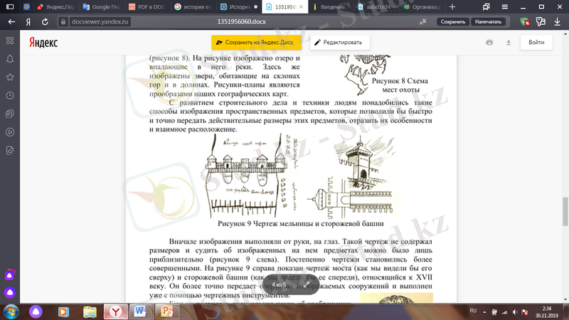 Жазықтықта нысандарды бейнелеу туралы ғылымның пайда болуы мен даму тарихы алыс өткеннен бастау алады. Қағаз бен қарындашты әлі білмейтін адам көмір, бор немесе түрлі-түсті заттар көмегімен тұрғын үйлердің қабырғаларында қоршаған табиғаттан заттарды суреттеген. Көбіне жануарлар мен құстардың суреттері болды, аң аулау адам үшін тіршілік көзі болды. Мұндай кескіндер барлық дерлік құрлықтарда кездеседі. [15]