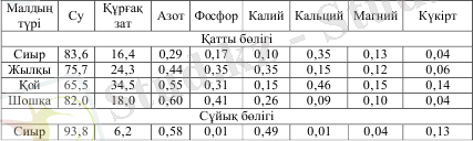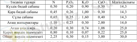 Кесте 1. Төсенішті көңнің қатты және сұйық бөліктерінің химиялық құрамы.