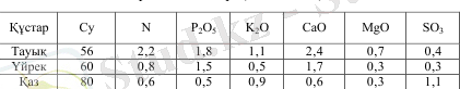 Құс саңғырығы тез әсер ететін, құнды органикалық тыңайтқыш болып саналады. Онда өсімдік оңай сіңіретін азот және күл элементтері мол (3-кесте) .
