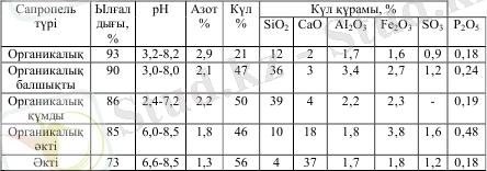 Кесте 4. Сапропельдің орташа химиялық құрамы.