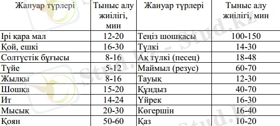 Кесте 3 - Жануарларда тыныс алу жиілігінің ауытқуы