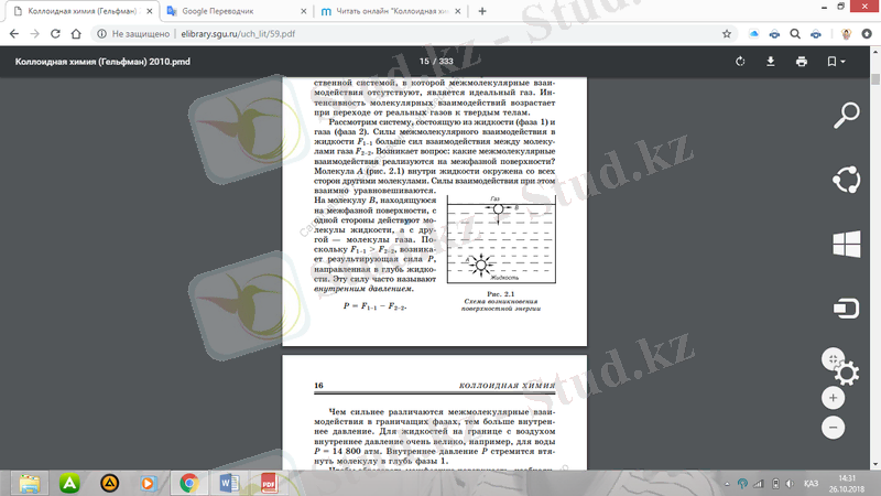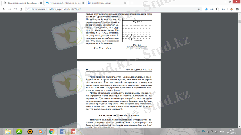 Сұйықтықтан (1-кезең) және газдан (2-кезең) тұратын жүйені қарастырамыз. Сұйықтықтағы молекулалық өзара әрекеттесу күштері газ молекулаларының өзара әрекеттесу күштерінен көп. Сұрақ туындайды: кезең аралық беткейде қандай молекула аралық байланыс жүзеге асады? Сұйықтықтың ішіндегі A молекуласы (2. 1 сур. ) басқа молекулалармен жан-жақты қоршалған. Өзара байланыс күштері өзара теңдестірілген. B молекуласының кезең аралық беткейінде бір жағынан сұйық молекулалар, ал екінші жағынан - газ молекулалары бар. Нәтижесінде күшті сұйықтыққа бағытталған Р күші пайда болады. Бұл күш жиі ішкі қысым деп аталады.