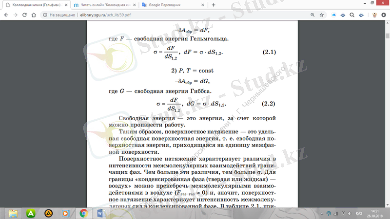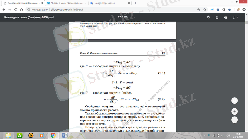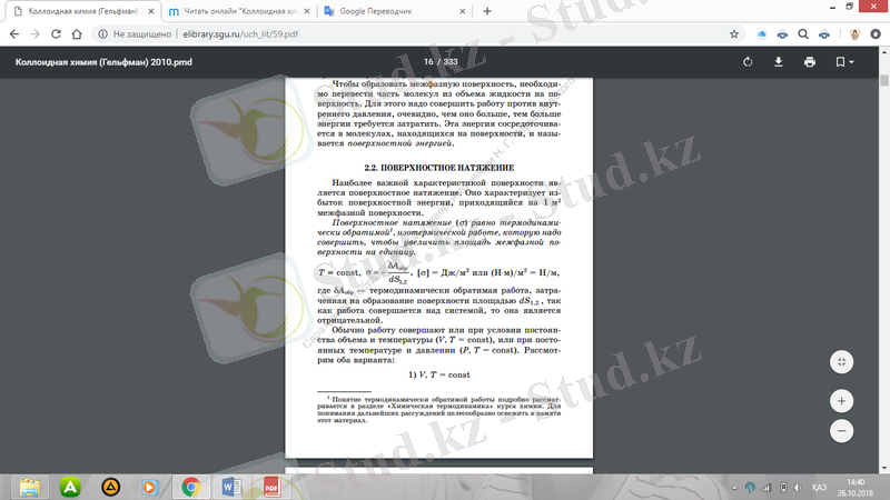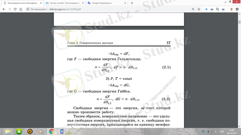 Беттік құбылыстар мен беттік керілу: адсорбция және сорбциялық процестердің термодинамикасы