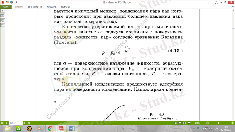 4. Адсорбенттің беті жиі кеуекті болып табылады. Кеуектердің болуы капиллярлы конденсациямен бірге адсорбцияның жүруіне алып келеді.