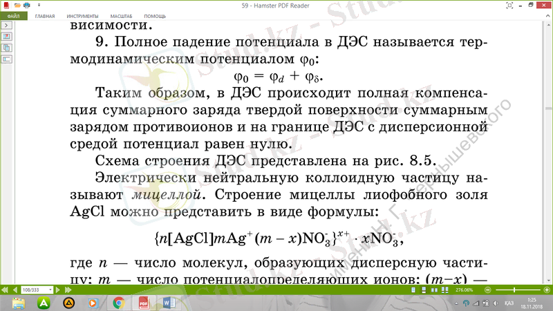 1. ҚЭҚ қатты бөлшектердің бетінде орналасқан ықтимал-айқындаушы иондармен және қатты бөлшектердің бетіне жақын дисперсиялық ортада орналасқан қарсы иондардың баламалы мөлшерімен құрылады.