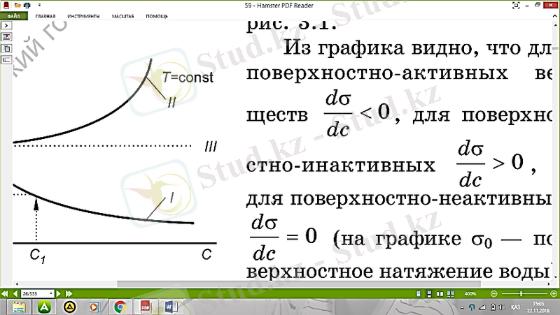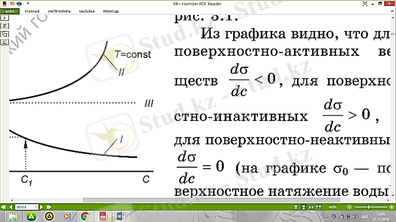 Жоғарыда көрсетілген заттар топтары үшін беттік кернеудің еріген зат шоғырлануына тәуелділігі ᵟ= f (c) 1-суретте сызба түрінде көрсетілген.