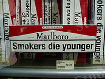 «Темекі шегушілер ертерек өледі» (Марлбородағы темекі жарнамасында ескерту)