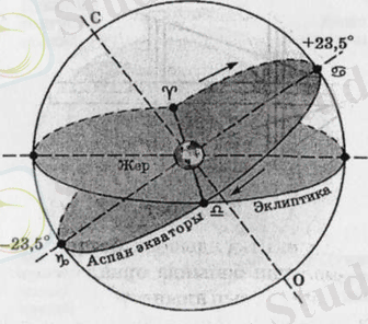 Сурет 1. 4 - Аспан сферасындағы эклиптика және экватордың орналасуы