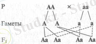 Рис. V. I Бірінші буын будандарының біркелкілік Заңын бейнелейтін Схема. Барлық ұрпақ-гетерозиготтар