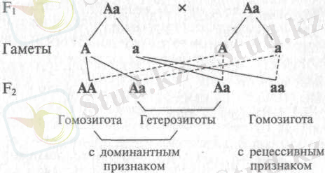 - Сур. V. 2 сыртқы түріне қарағанда, доминантты белгісі бар әрбір үш өсімдікке рецессивті белгісі бар бір адам келеді, ал тұқым қуалайтын потенциал бойынша өзгеше ыдырау байқалады - 1АА : 2Аа : 1АА.