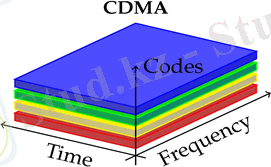 1-суретте CDMA жүйесінде радио ресурстарын тарату принципін көрсетеді. CDMA (CDMA) радиосындағы FDMA және TDMA схемаларына қарағанда кодтар таратылады. Осылайша, барлық пайдаланушылар бірдей жолақты бір уақытта пайдалана алады. Әрбір пайдаланушыға бөлінген жиілік ауқымының бүкіл жиілік ауқымында сигнал кеңейтілетін көмегімен код беріледі. Кодтар транзакциялар саны бойынша ерекшеленеді және ұяшықтарды, арналарды және абоненттерді бөлу үшін қолданылады. Себебі, TDMA және FDMA жүйелерінен айырмашылығы, барлық абоненттер бірдей жиіліктерді бір уақытта пайдаланады, уақыт пен жиілік интервалына бөлінбейді. Екі жағдай бар: