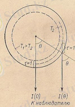 бұрышпен қиылысатын болса (1. 5 - сурет), онда оптикалық қалындығы r=1 шамасына температурасы төменірек болатын неғұрлым жоғарырақ қабаттарда жетеді. Сондықтан Күн дискісы шетінің сәулелену интенсивтілігі ортасының сәулелену интенсивтілігінен аз болады.