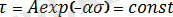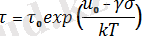 Жарамдылық мерзімінің τ сыртқы бір бағытта тартатын механикалық кернеуге σ және сынау температурасына тәуелділігі [7] еңбекте көрсетілген. Ол еңбектегі параметрлер арасындағы талдай отырып, барлық зерттелген қатты денелерге мынадай түрдегі параметрлер қатынасына бағынатындығы анықталған: