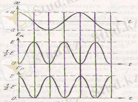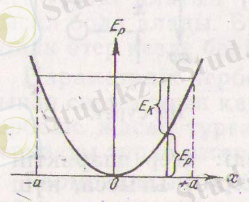 пружинаның массасын ескермейміз) пайда болады. Тепе-теңдік қалпына келген соң шарик, инерция бойынша қозғала береді. Бұл қозғалыс кемімелі қозғалыс болады және кинетикалық энергия толығымен потенциялдық энергияға айналғанда, яғни шариктің ығысуы -