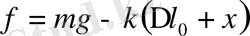 Егер шарикті тепе-теңдіктен х -қа ( х алгебралық шама) тең қашықтыққа ығыстырсақ, онда пружинаның ұзаруы ∆ l 0 +x шамасына тең болады және қорытқы күштің х осіне проекциясы (бұл проекцияны жай ғана f әрпімен белгілейік) мынадай мән қабылдайды: