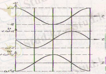 Гармониялық тербеліс, яғни (1. 7) функциясының графигі 3-суретте көрсетілген. Горизонталь оське t уақыт, ал вертикаль оське х ығысу салынған. Косинус -1-ден +1-ге дейін өзгеретіндіктен, х -тің мәні - а -дан + а -ға дейінгі аралықта жатады.