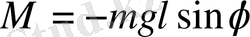 Маятниктің тепе-теңдік қалыптан ауытқуын жіптің вертикальмен жасаған бұрышы арқылы сипаттаймыз (8-сурет) . Маятник тепе-теңдік қалыптан ауытқыған кезде шама жағынан mglsinφ -ге тең ( т - маятниктің массасы, ал l - оның ұзындығы) айналдырушы мезет пайда болады. Ол маяникті тепе-теңдік қалпына келтіруге тырысатындай болып бағытталады және бұл жағынан квазисерпімді күшке ұқсас. Сондықтан, ығысу мен квазисерпімді күш тәрізді М моменті мен бұрыштық ығысуына қарама-қарсы жазу керек.