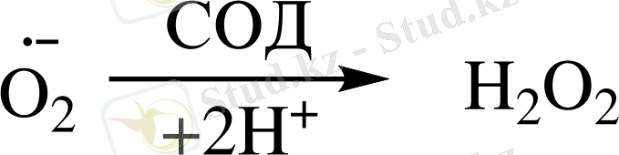 O 2 •- радикалының сутектің асқын тотығына айналу реакциясында катализатор рөлін супероксиддисмутаза(СОД) ферменті атқарады.