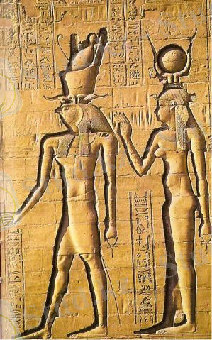 Исида - құдай-ана, Осиристің қарындасы және әйелі; сйыр мүйізді, маңдайында күн дискі, қолында папирус бұтағы бар әйел.