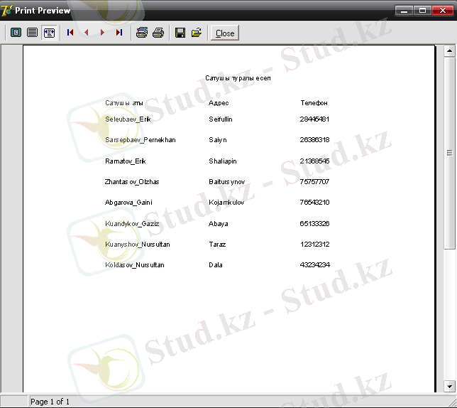 - Жеткізуші, сатушы, тауар және сатылым кестелерінің мәліметтерінің көрсетілімі;