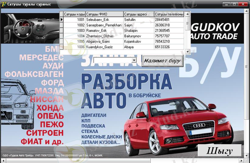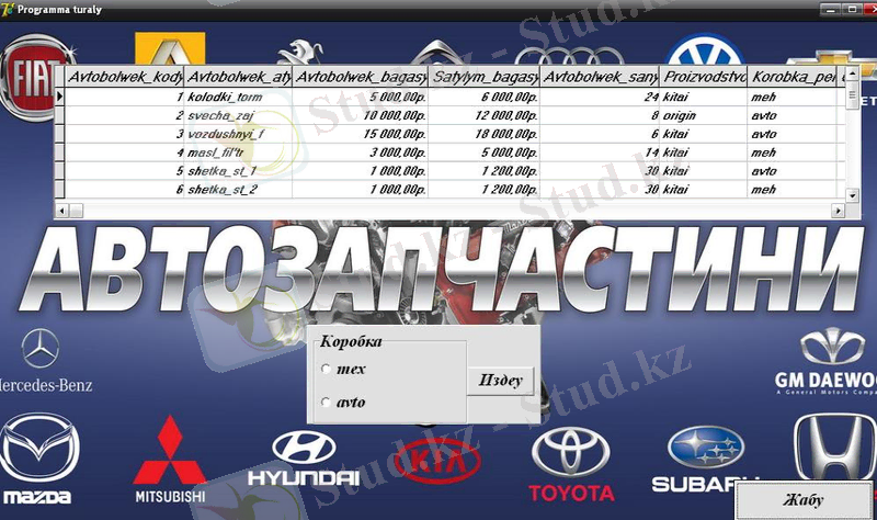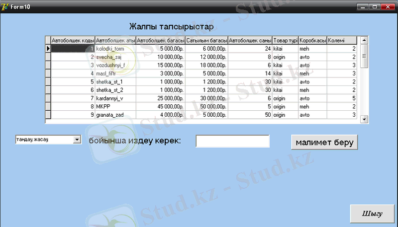 “Автобөлшектер дүкені ” МӘЛІМЕТТЕР БАЗАСЫ