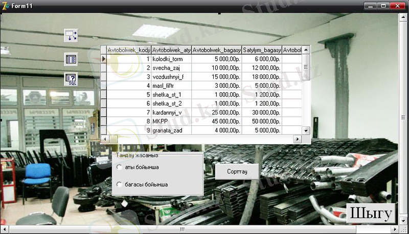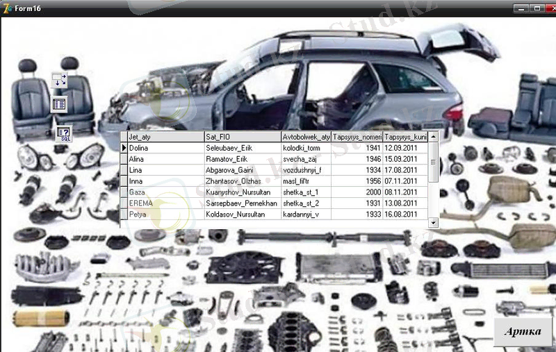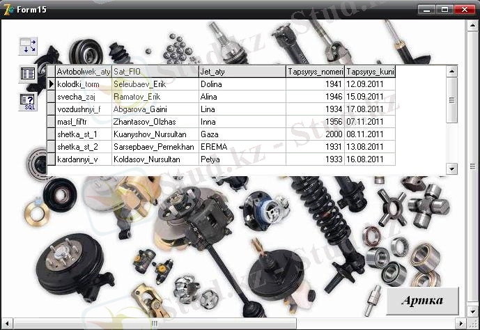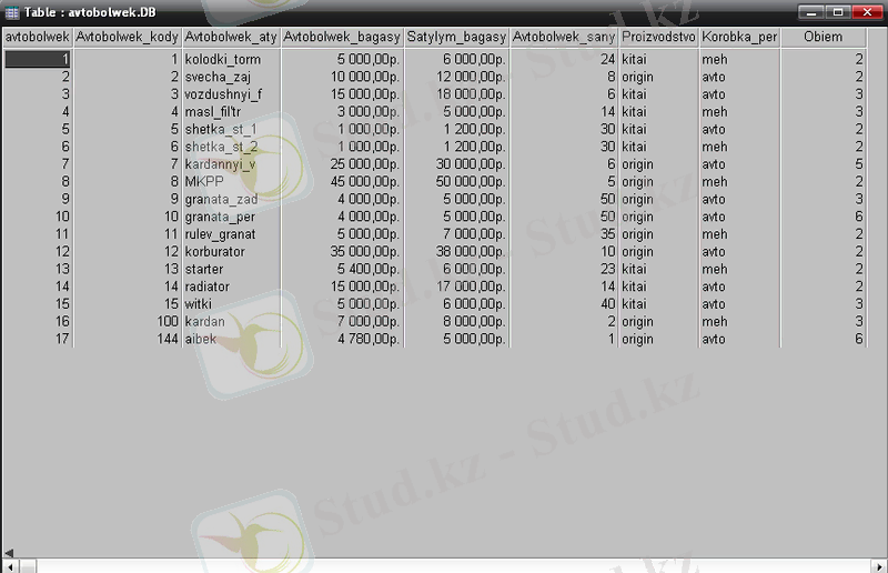 Автобөлшектер дүкенінің мәліметтер базасын жобалау және жүзеге асыру (курстық жоба, Delphi 7)
