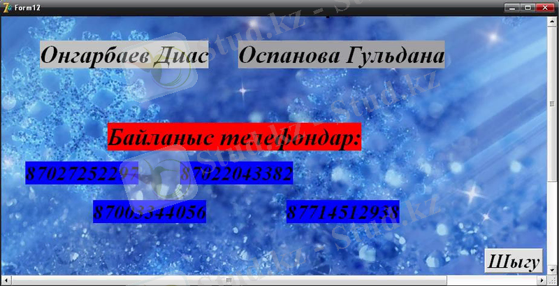 Бұл жобаның мақсаты біз секілді бастаушы программистер үшін Delphi программасында еркін жұмыс істеп, мәліметтер базасымен толық танысуға мүмкіндік ала аламыз. Сонымен қатар бұл Delphi программасының өндіріс орындарында жұмыс істеу тәжірибесін жеңілдету кезінде таптырмас жоба болып табылады.