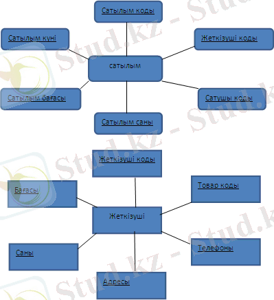 - Жеткізуші (жеткізуші коды, тауар коды, мекен-жайы, телефоны, бағасы, саны) ;