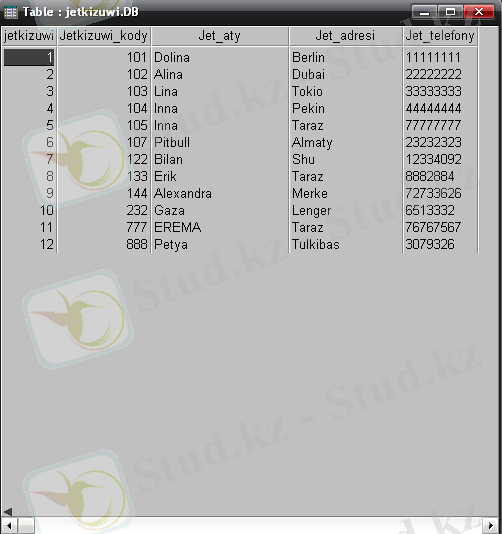 қатар жазбаларға мәліметтер енгізу. Қолданушының әсерлі жұмысы үшін, кестедегі бар жазбаларды таңдау арқылы оларды өшіру, өзгерту және мәліметтер енгізу;