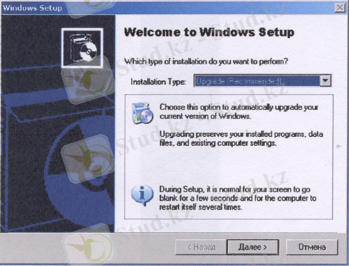 1. 2 Windows ХР операциялық жүйесін орнатылған операциялық жүйені жаңарту арқылы орнату