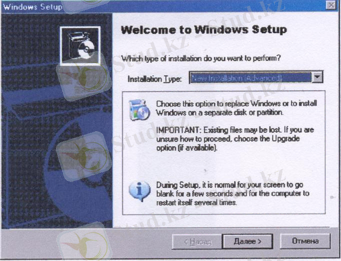1. 1 Windows ХР операциялық жүйесін жаңадан орнату