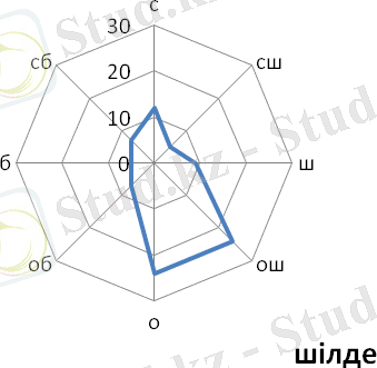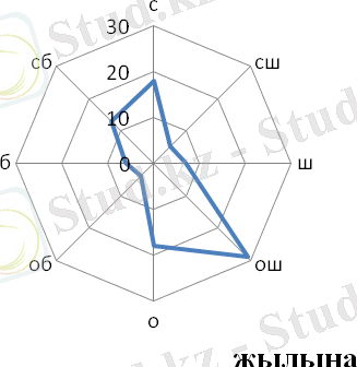 Жыл мезгіліндегі жел бағыты мен штильдердің (ортасында) қайталдануы (%)
