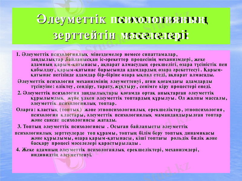 Әлеуметтік психологияның зерттейтін мәселелері:
