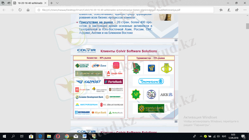 Colvir банк жүйесі ТМД елдеріндегі ең танымал ақпараттық жүйелердің бірі болып табылады, бұл негізгі және әкімшілік-шаруашылық қызметке қатысты барлық банктік операцияларды тиімді жүргізуге мүмкіндік береді. Елімізде Colvir банк жүйесінің қолданылуы 2. 1. 1-суретте көрсетілген.