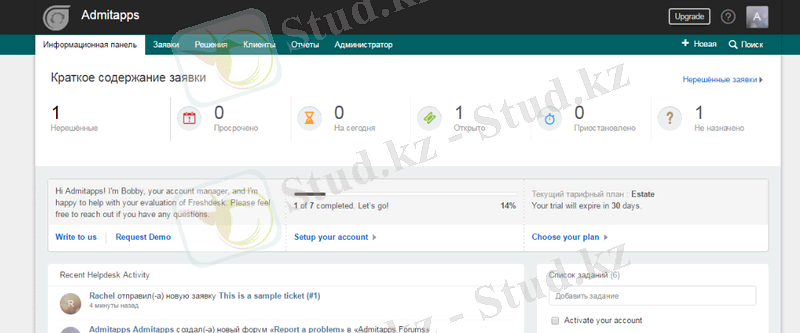 1. 5-сурет - Freshdesk жүйесінің негізгі веб-беті