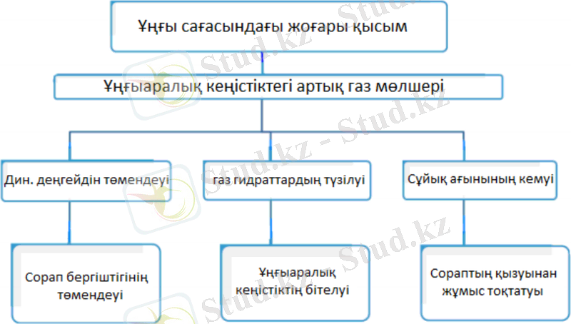 Газогидраттардың пайда болуына ұңғыманың тоқтауы және онымен байланысты сұйықтықтың сууы, қабаттық сұйықтықта ылғалдың болуы, сондай-ақ мұнайдың газбен қанығу қысымына сәйкес келетін аймақтан жоғары орналасқан ұңғыма учаскелерінде еркін газ фазасының болуы әкелуі мүмкін. Гидраттардың шөгінділерінің статистикасы СКҚ-ның жоғарғы бөлігінде және құбыр сыртындағы кеңістіктегі динамикалық деңгейдің үстіндегі аймақта жиі кездесетін жағдайлардың байқалатынын көрсетеді. Газогидраттардың пайда болуы құбыраралық кеңістіктің жабылуына және сұйықтықтың дебитінің төмендеуіне әкеледі, тіпті қондырғыны беруді толық тоқтатуға дейін. Ұңғыманың оқпанындағы динамикалық деңгейдің төмендеуінің салдары сорапты түсіру тереңдігін арттыру қажеттілігі болып табылады, бұл қосымша шығындармен: сорап-компрессорлық құбырлар мен электр кабелімен, СКҚ бағанасына түсетін жүктемені арттырумен байланысты. Құбырлы кеңістікте еркін газдың жиналуы мынадай асқынуларға әкеледі: сұйықтықтың ағынын азайту, динамикалық деңгейдің төмендеуі, газогидраттардың пайда болуы, 51 жабдық тораптарының жылдам коррозиялық тозуы, "ұңғыманың разрядтауы" және т. б. деп аталатын атмосфераға зиянды әсер ету салдарынан сораптың берілуінің төмендеуі және үзілуі. Бұл әдіс қоршаған ортаның температуралық жағдайына және шығару желісіндегі қысым мәніне қарамастан, автоматты түрде электр ортадан тепкіш сораптармен пайдаланылатын ұңғымалардың құбыр сыртындағы кеңістігінде пайда болатын газ қысымын төмендетуге мүмкіндік береді.