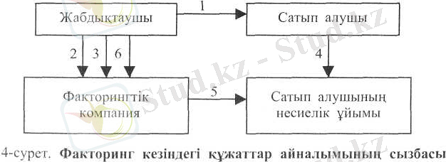 Факторинг барысындағы құжат айналымының сызбасы 4-сурет-те келтірілген.